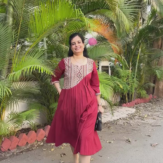 Riya Maroon Front Gather cotton Dress